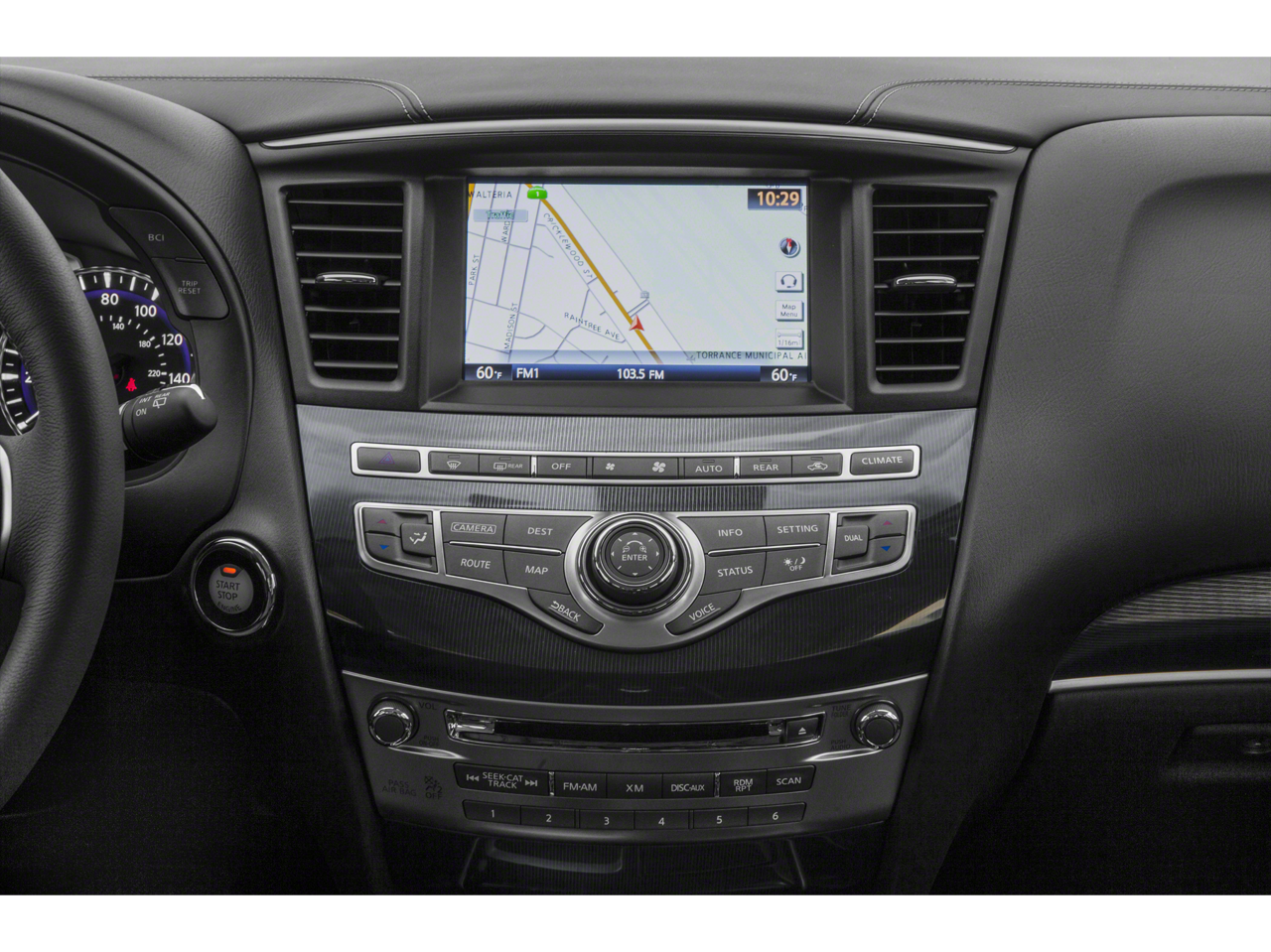 - Radio: AM/FM/CD Audio System -inc: 6 speakers, MP3 playback capability, Radio Data System (RDS), speed-sensitive volume control, INFINITI controller, auxiliary audio/video input jacks in front center console, 3 USB charging ports: rear console-mounted (1x) and 3rd row (2x), INFINITI InTouch w/8" WVGA color touch-screen vehicle information display, Bluetooth® hands-free phone system, hands-free text messaging assistant, streaming audio via Bluetooth® wireless technology, INFINITI voice recognition for audio, Bluetooth® and vehicle information including music search by voice, 2 USB ports for iPod and compatible devices, HD Radio, SiriusXM satellite radio w/3-month complimentary trial and SiriusXM Travel Link w/4 year complimentary trial access to weather, fuel prices, stock prices, sports scores and movie times