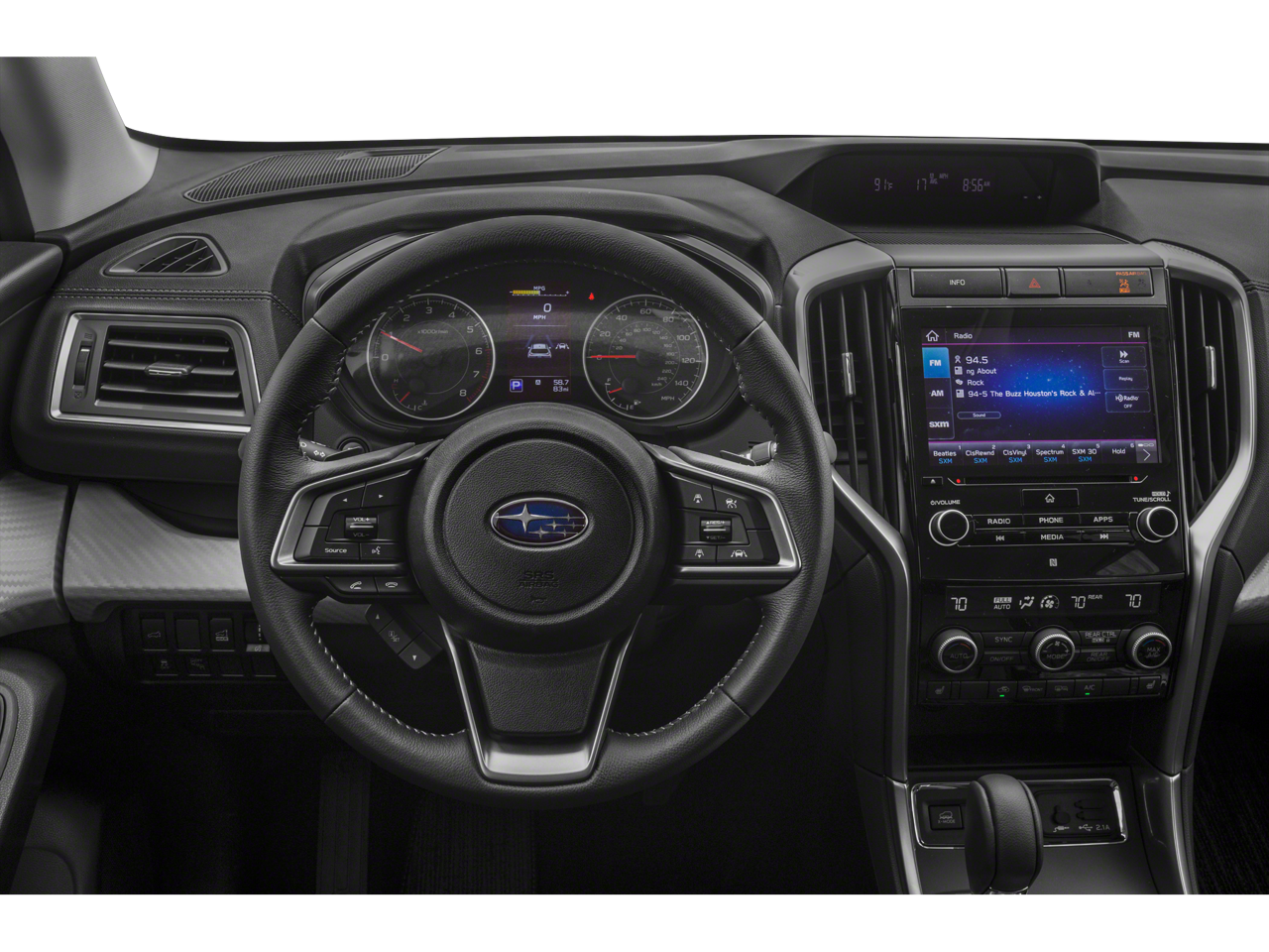 - Radio: Subaru STARLINK 8.0" Multimedia Plus System -inc: AM/FM stereo HD Radio w/single disc CD player, MP3/WMA/CRR/RW file capability, multi-touch gesture high resolution display screen, voice activated controls, Bluetooth® audio streaming and hands-free phone connectivity (applicable w/compatible cell phone), Bluetooth® hands-free SMS text messaging connectivity (applicable w/compatible cell phone), Near Field Communication (NFC), iPod control capability, SiriusXM All Access radio (4 months free trial/subscription required after), SiriusXM Travel Link (4 months free trial/subscription required after), smartphone integration for Aha, Android Auto, CarPlay, Pandora and STARLINK cloud applications, USB and Over The Air (OTA) audio system update, steering wheel controls for audio and Bluetooth®, 6 speakers, 3.5mm auxiliary input jack and front and rear dual USB ports