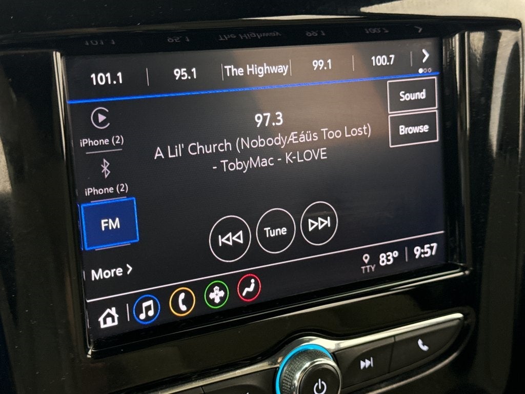 - Audio system, Chevrolet Infotainment 3 system 7" diagonal color touchscreen, AM/FM stereo. Additional features for compatible phones include: Bluetooth® audio streaming for 2 active devices, voice command pass-through to phone, Apple CarPlay and Android Auto capable