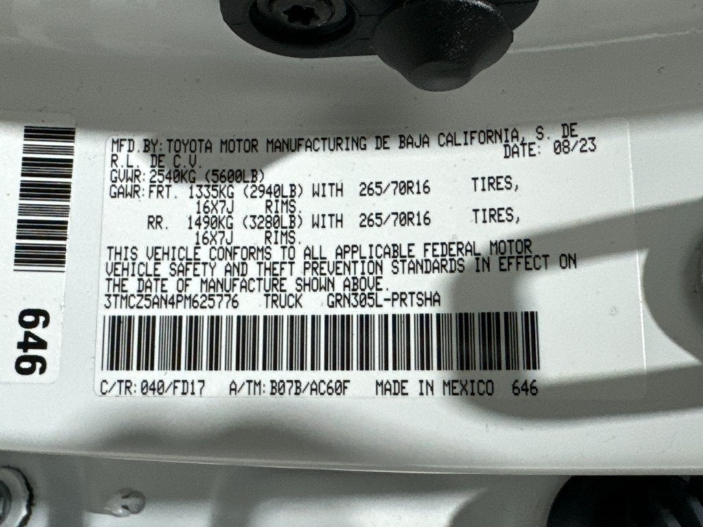 - Vehicle Name: Toyota Tacoma 4WD